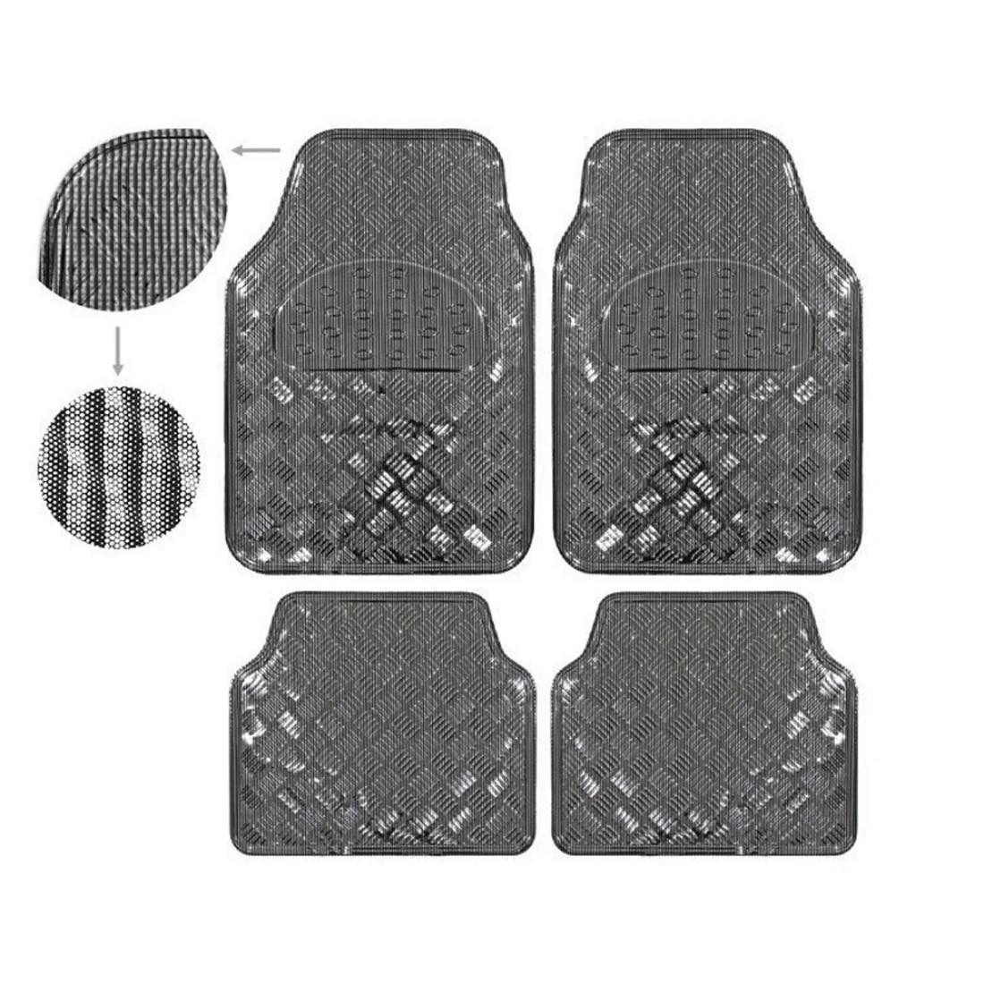 Fényes, alumínium hatású gumi szőnyeg, mely az egyedi belső terekhez tökéletesen igazodik.