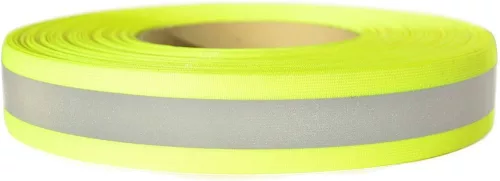 Fényvisszaverő, fluoreszkáló szalag élénk neon sárga színben. Baleset-megelőző, világító biztonsági csíkok kialakítására.