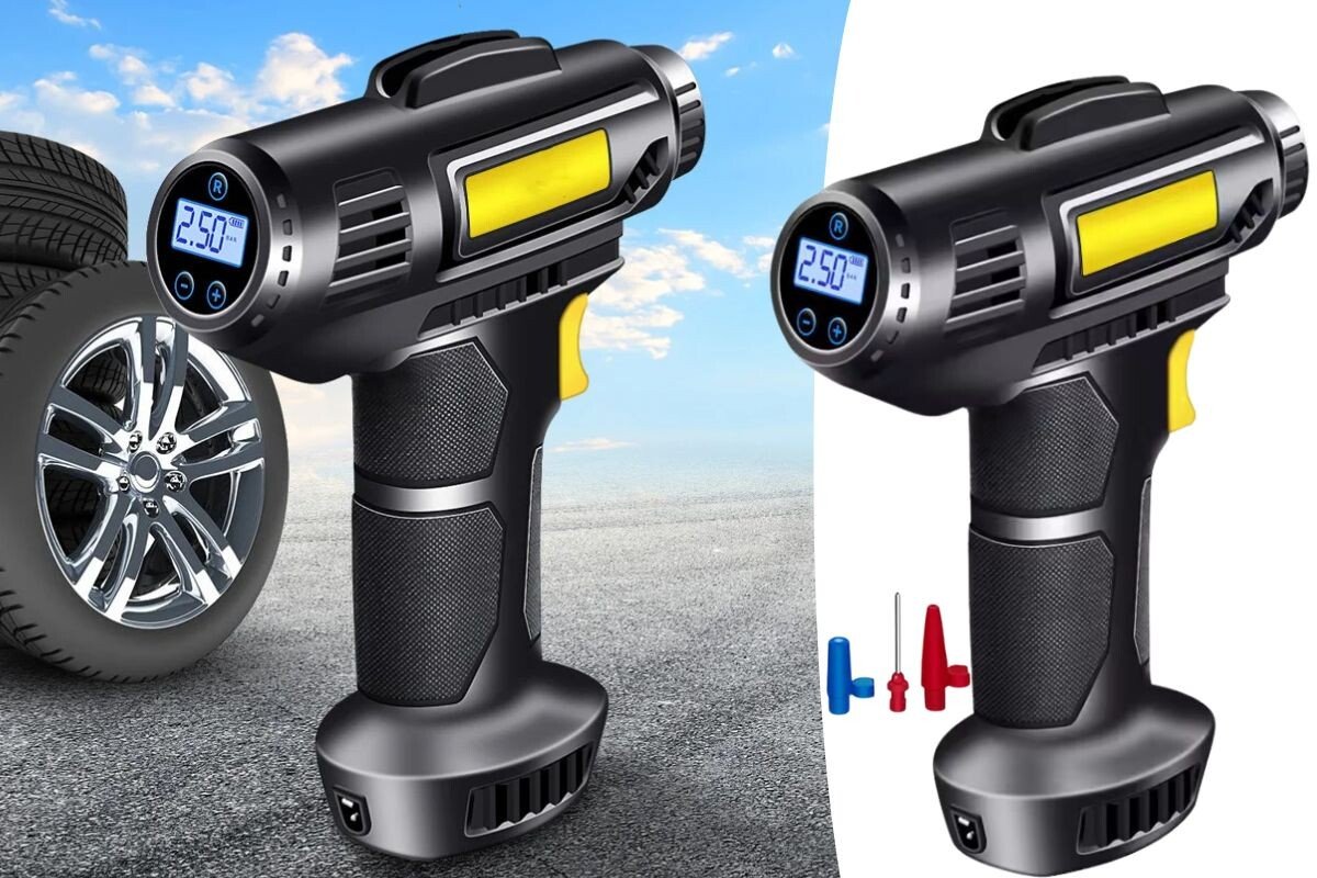 A kompresszor erős 12 V-os akkumulátorral van felszerelve, amely percenként akár 20 liter levegőt is biztosít. Ezenkívül LCD kijelzővel is rendelkezik, amely mutatja a gumiabroncsok nyomását, és megkönnyíti a nyomás ellenőrzését felfújás közben.USB töltés