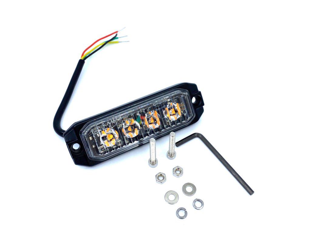 Sárga stroboszkóp figyelmeztető jelzőfény 4 LED-es 12-24V