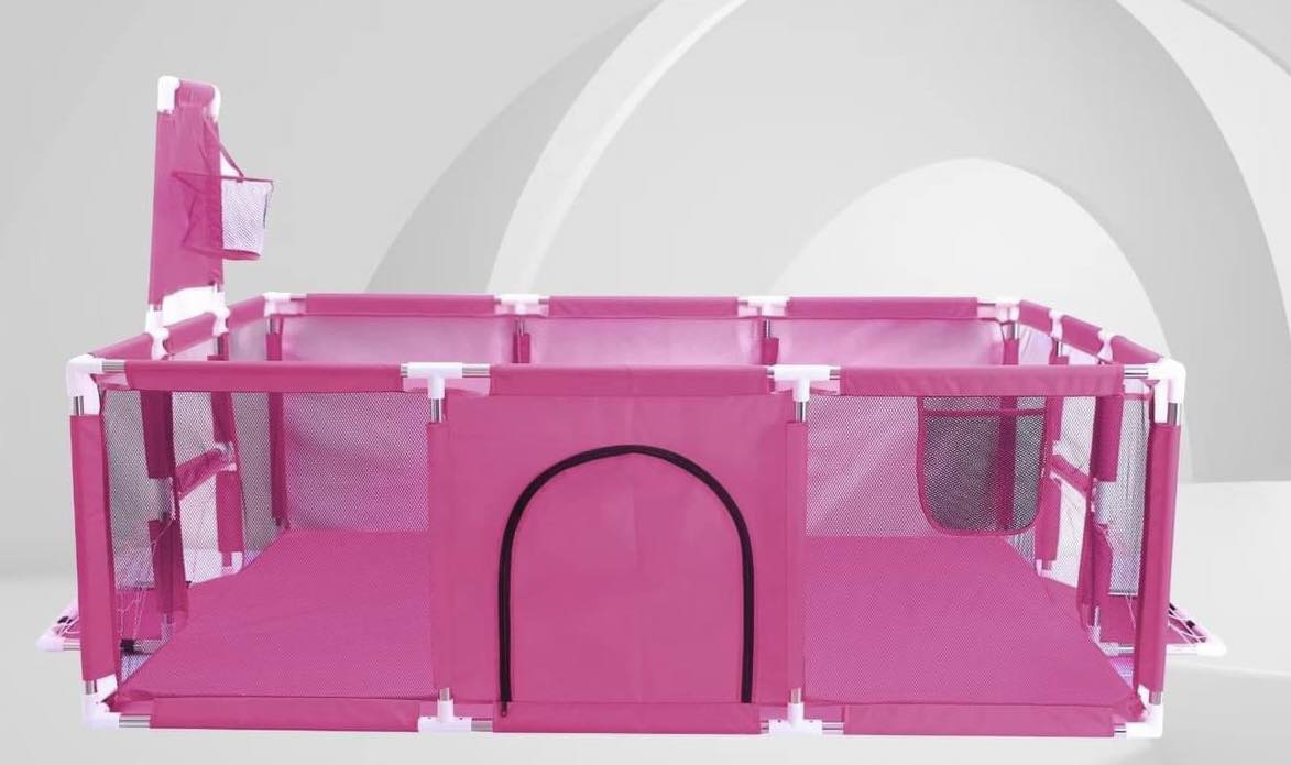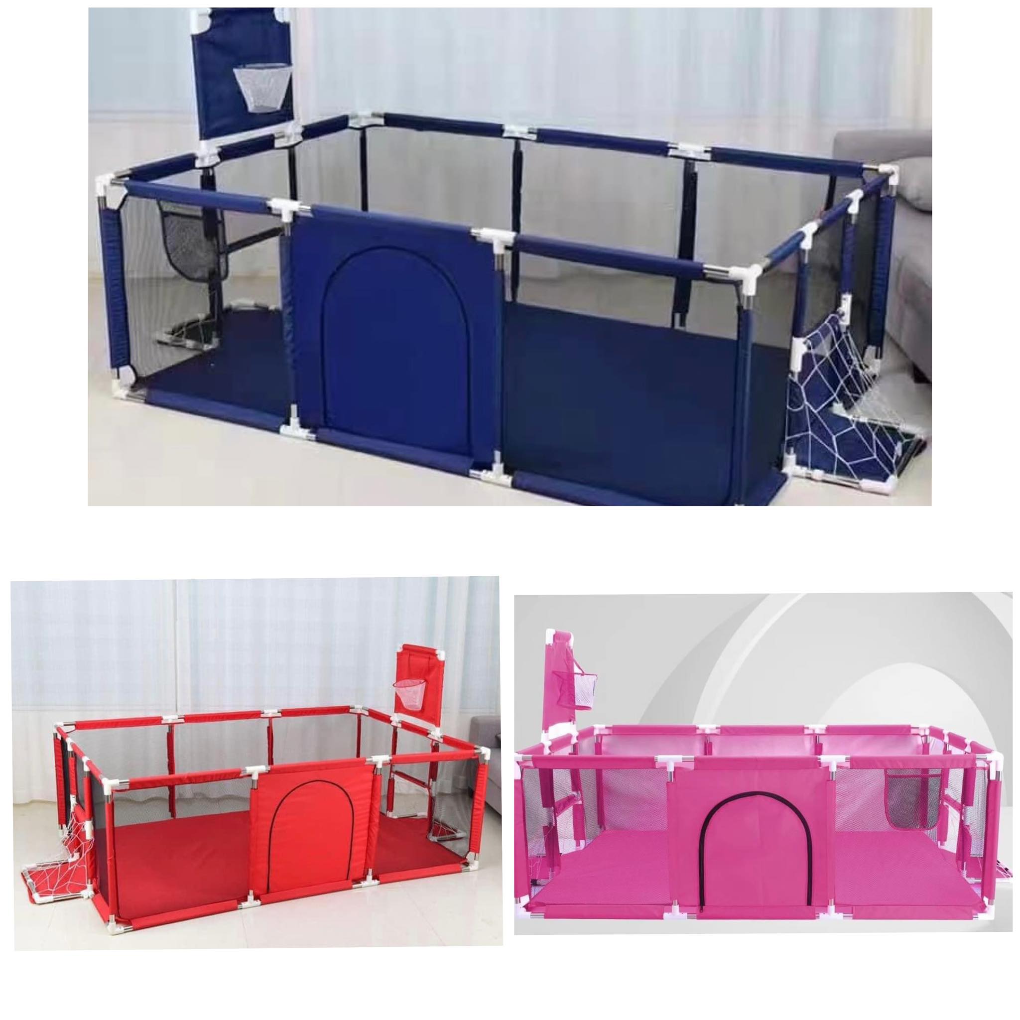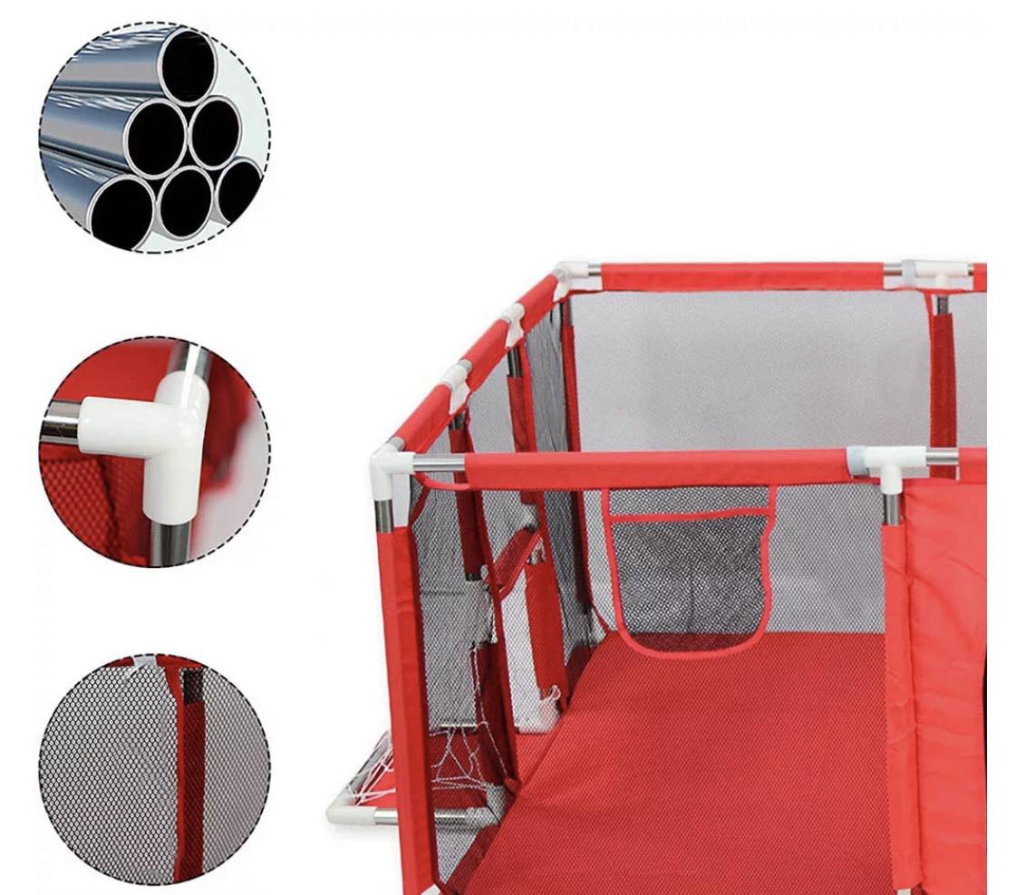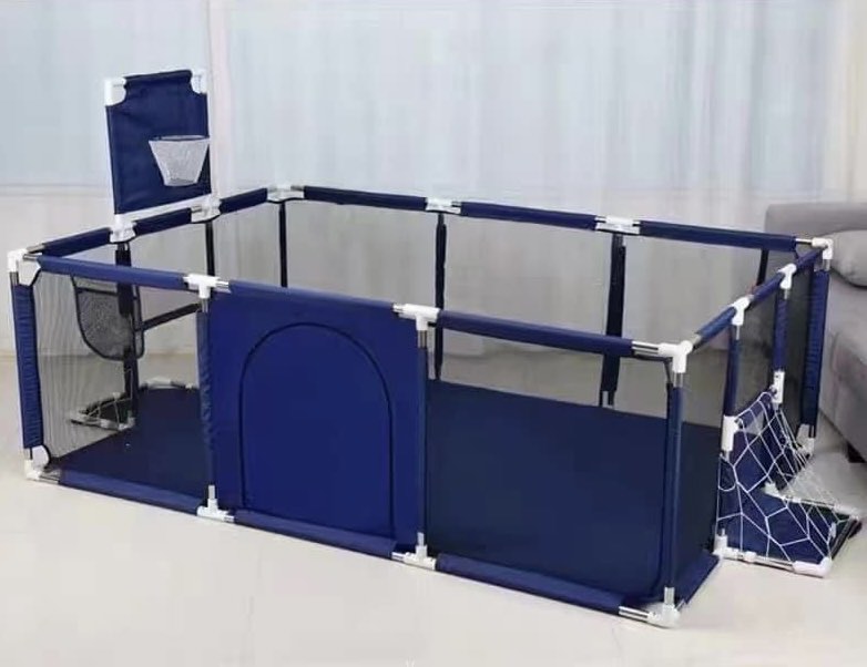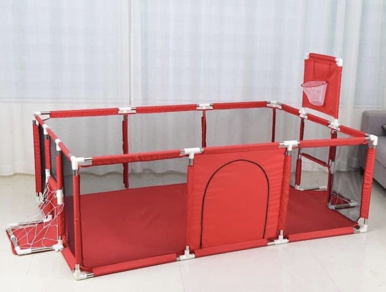 Nagyméretű gyerek járóka és játszótér kosár palánkkal és foci kapukkal
