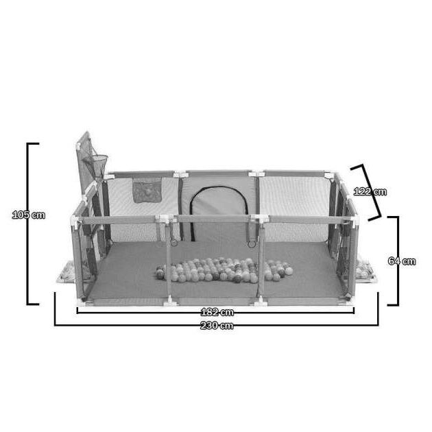 Lecipzározható bejáratának és a kb. 182×122 cm-es alapterületének köszönhetően a már önállóan közlekedő és játszó gyerekek saját játszótérként használhatják. A játékélményt kiegészíti egy kosárlabda palánk, és a járóka két végében megtalálható focikapu. Opcionálisan játéklabdákkal is feltölthető. A járóka és játszótér egyszerre több apróság számára is képes szórakozást nyújtani, akár órákon át is önfeledten kergetőzhetnek, játszhatnak benne. Ha pokrócokkal lefedik a tetejét, bunkerként is megállja a helyét. Kültéren és beltéren egyaránt felállítható, de az időjárás viszontagságaitól óvni szükséges. A gyerekek ki sem akarnak majd jönni belőle!